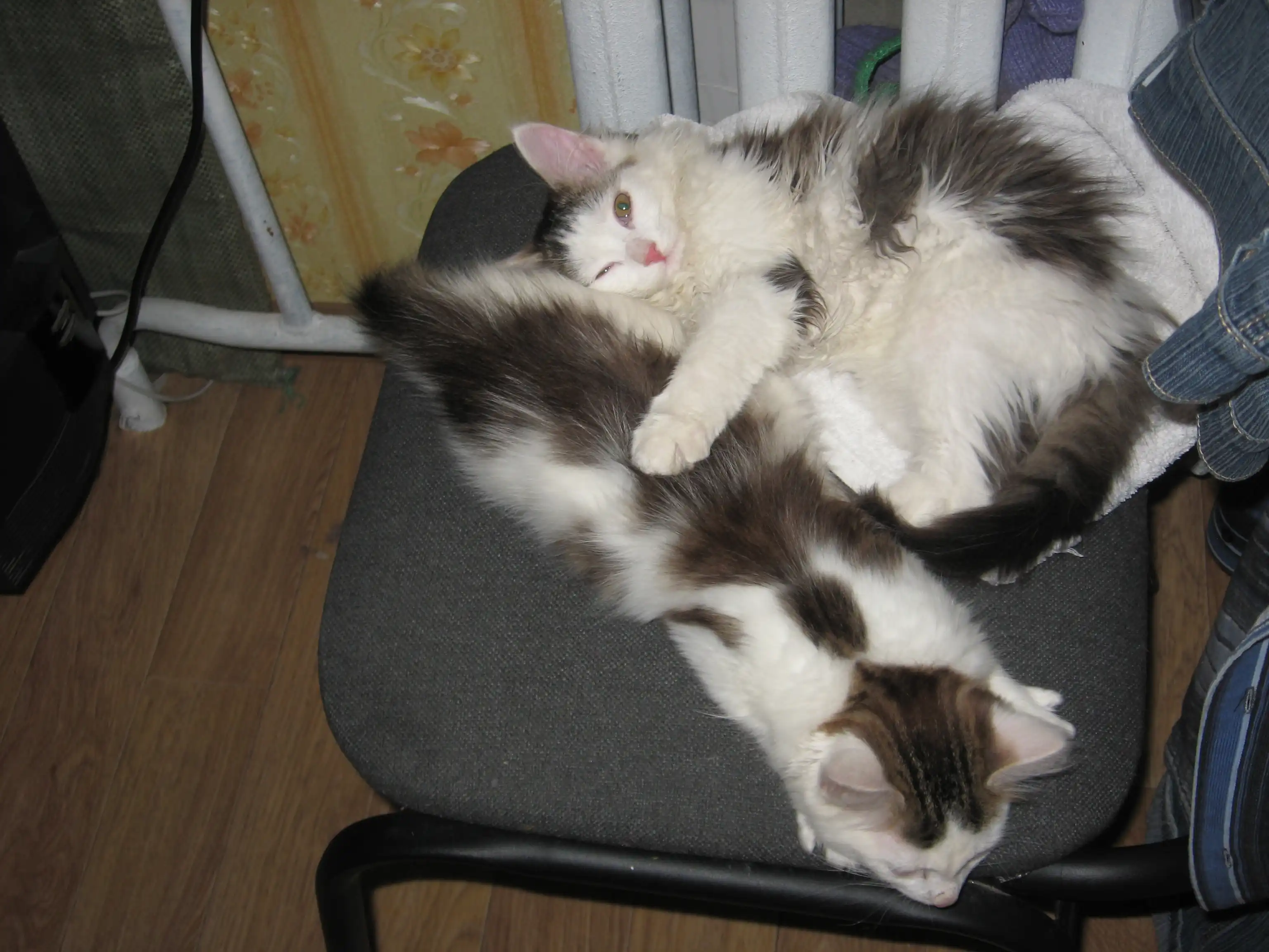 Найдены два котенка в доме по ул. Л. Шевцовой 15. Мальчик и девочка. Очень ласковые, игривые, пушистые, домашние. Не блохастые. На вид около 2х месяцев. Ищем старых или новых хозяев.