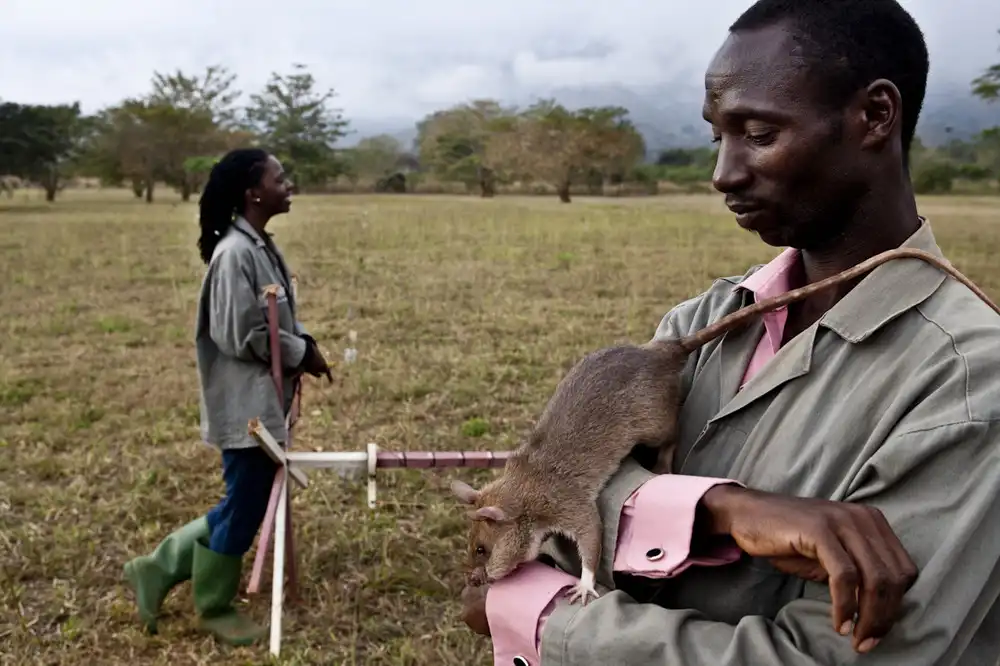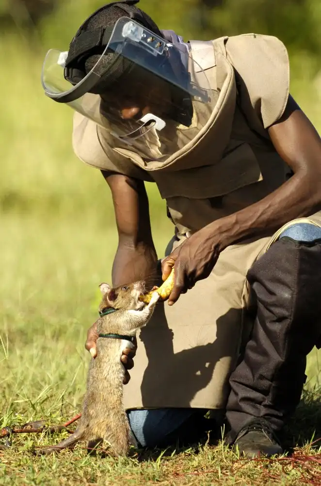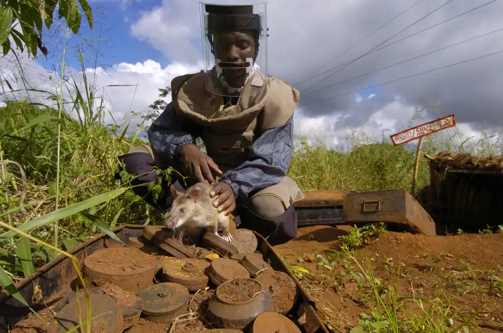 В Мозамбике уже много лет идет гражданская война. Ежемесячно от спрятанных в земле мин гибнет около 800 человек. Шесть лет назад назад здесь начал действовать необычный проект помощи саперам — поиском мин занимаются крысы. Эти животные легко обучаемы и на территории в 2 квадратных километра способны обнаружить более 2000 мин.