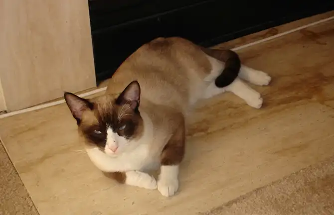 Буквально с английского языка название породы переводится как «снежная туфля» — получили его эти кошки за белоснежные «носочки» на лапках.