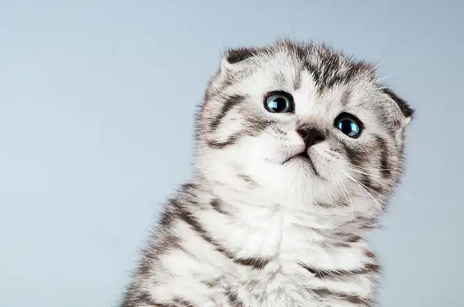 Отличительными чертами шотландской вислоухой является её скрипучий голос и способность без особых усилий стоять на задних лапах.