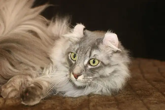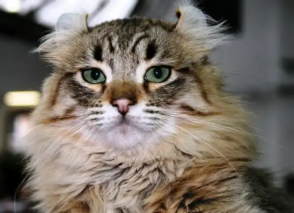 В другую сторону — назад — завёрнуты уши у американского кёрла — пропорциональной кошки средних размеров и разных окрасок.