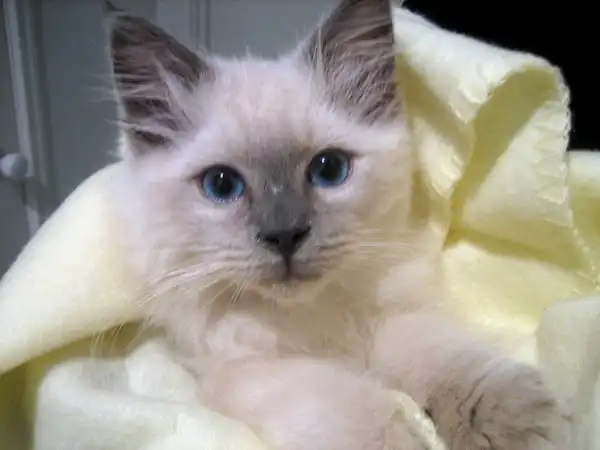 Не все знают, что сиамские котята рождаются полностью белыми, а хвост, лапки, мордочка и уши начинают темнеть по мере роста котёнка.
