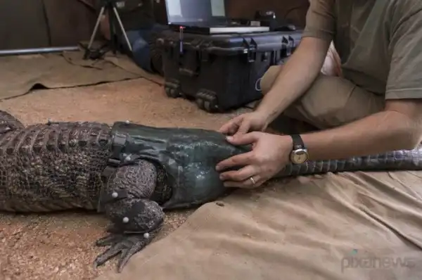 Сначала аллигатор долго не мог привыкнуть к своей новой «конечности» и стремился откусить ее, но в течение нескольких месяцев привык и даже научился пользоваться новым хвостом, который надежно крепится к его туловищу с помощь специальных эластичных лент с застежками.