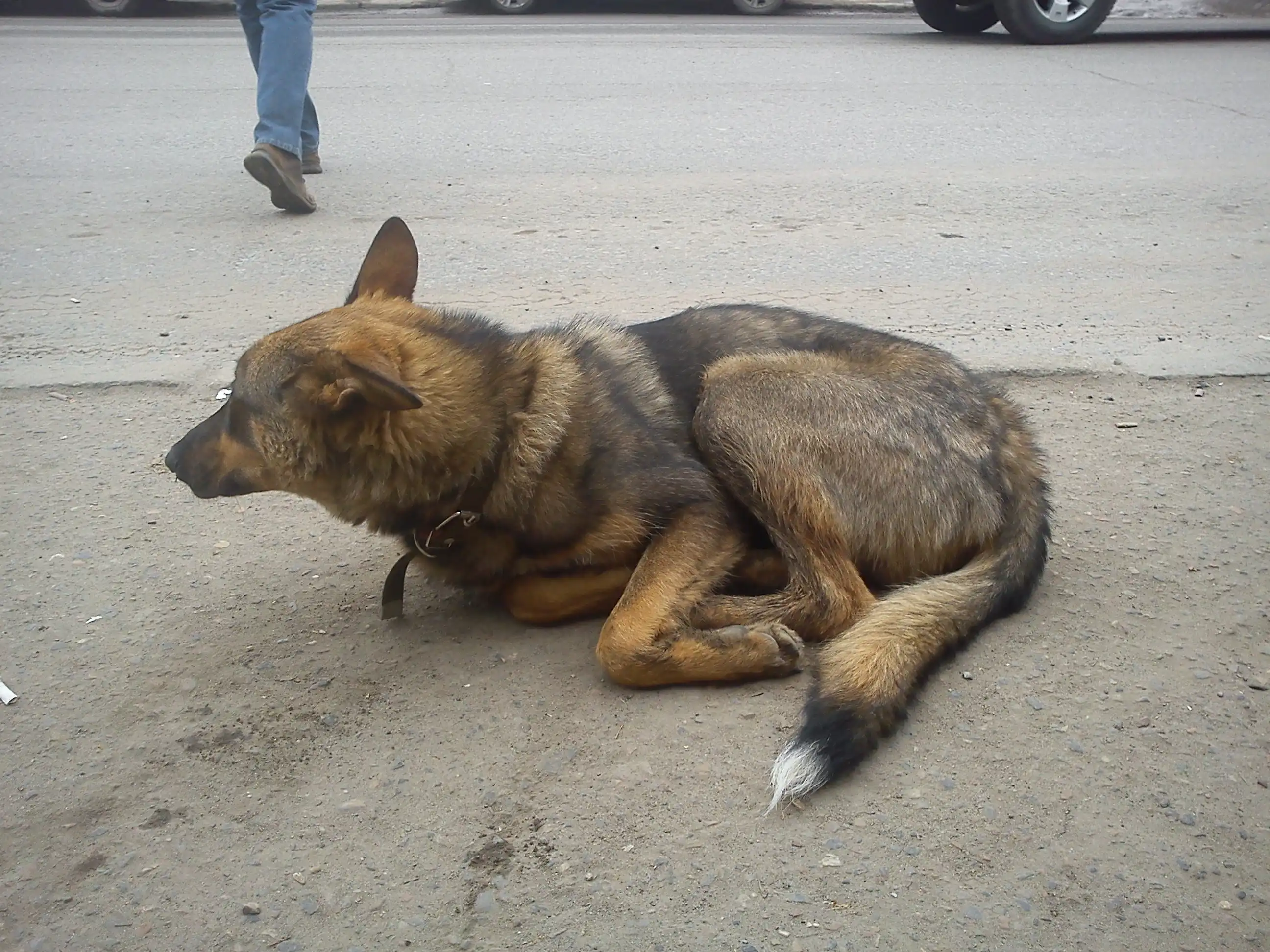 Молодой пес, черно-коричневого окраса (белые кончики лапок и хвоста), в брезентовом зеленом ошейнике был подобран на пл. Новособорная. Ранее был замечен на Дворце Спорта, ул. Красноармейской, пр. Фрунзе.