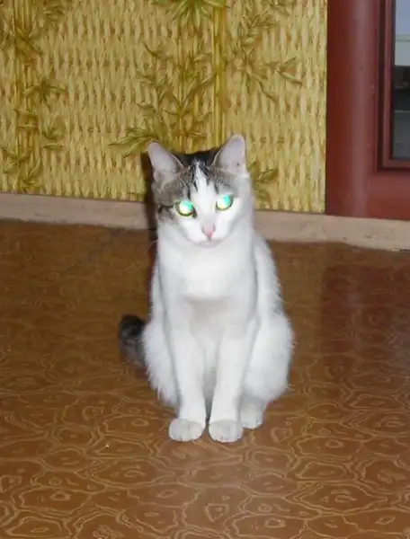 Молодая кошечка была найдена на улице пенсионеркой. Очень ласковая, ручная, по словам женщины - лечебная, находит больные места, ложится, и всё проходит. Но у женщины обострилась аллергия, антигистаминные таблетки не помогают.