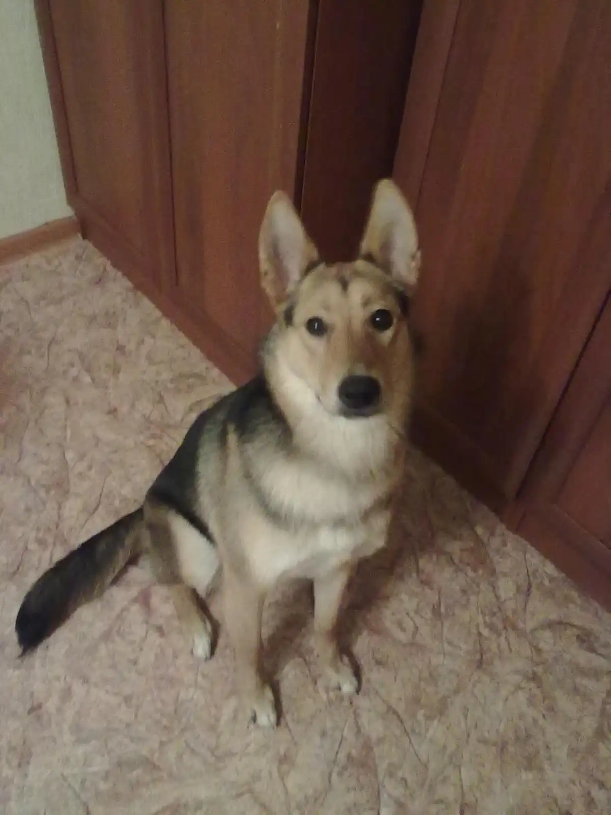 Молодая собачка, метис овчарки, ищет дом и любящих хозяев.