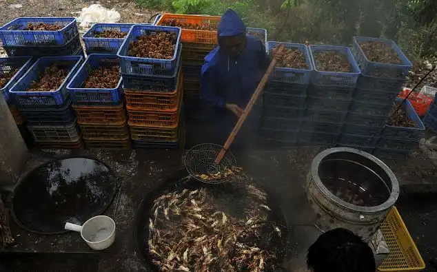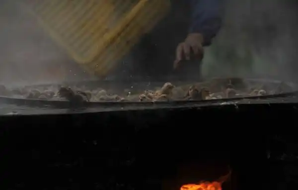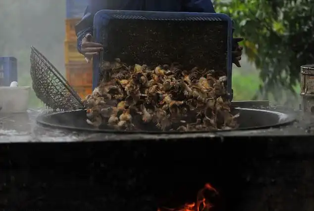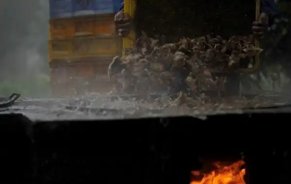 В Китае по-прежнему бушует птичий грипп, количество жертв растет, а потому китайские фермеры расправляются с птицей самыми жесткими методами. Перед этим птенцов сжигали мешками, а теперь нашли более быстрый и эффективный способ - варить новорожденных цыплят и утят заживо. Некоторых все-таки вакцинирует, но большинство отправляется на тот свет в мучениях.