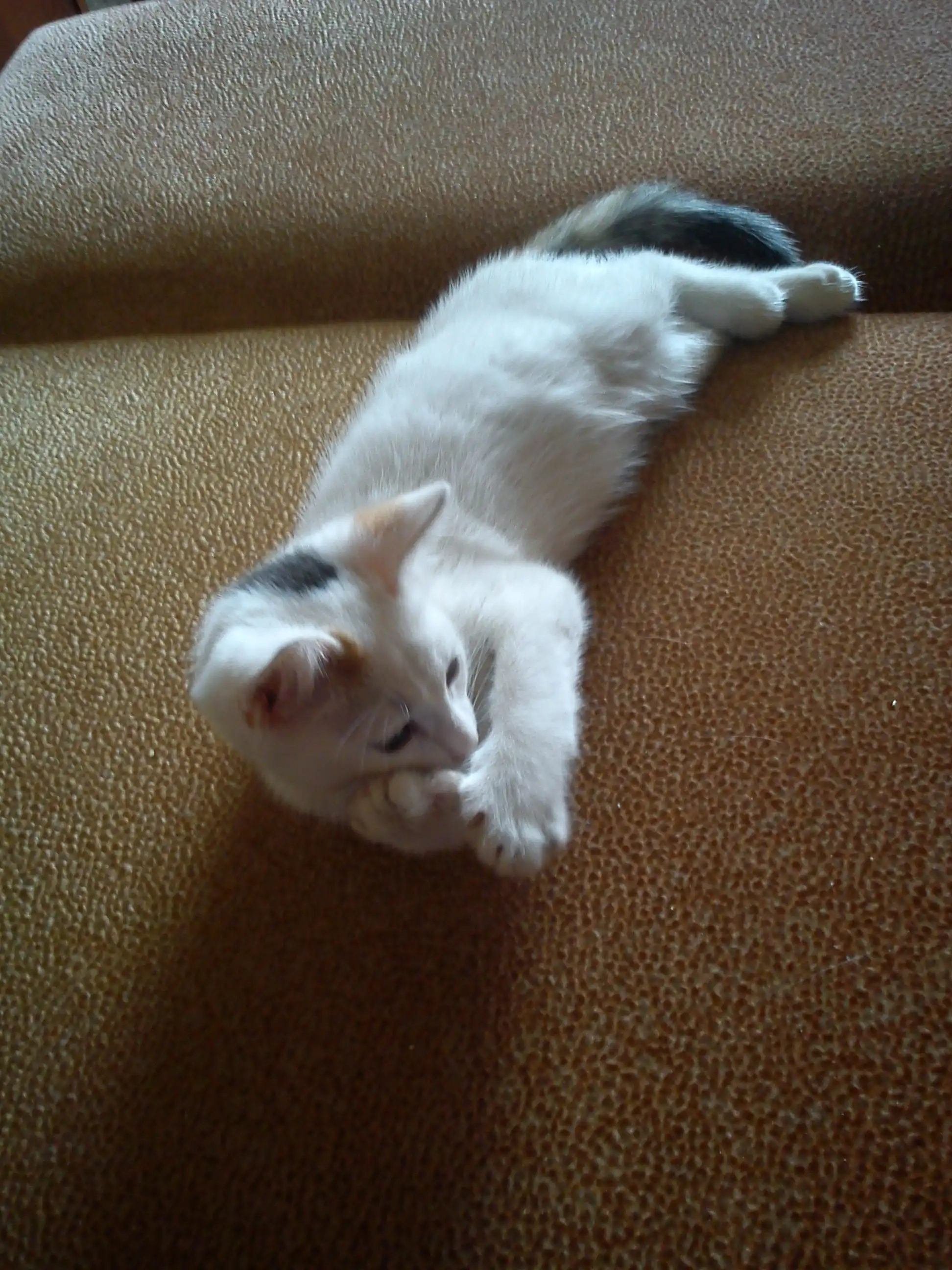Замерзший и плачущий от страха мальчишка был подобран на улице. Дома его помыли, проглистогонили, осмотрели и убедились, что малыш абсолютно здоров. Мальчишке примерно полтора месяца. Теперь, сытый и довольный, котейка исследует мир. Уже знает лоток на отлично, очень игрив, не надоедлив, но любит помурчать, как маленький трактор, когда ему уделяют внимание.