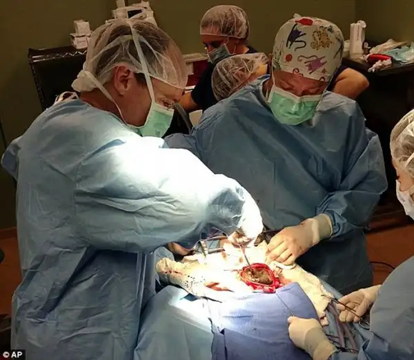 Врачи рассказали, что обнаружили комок шерсти, используя специальную камеру. Вернон Йейтс, некоммерческая организация которого регулярно оказывает помощь правоохранительным органам в решении проблем с изъятыми животными, говорит, что он благодарен врачам, которые сделали операцию абсолютно бесплатно, за спасение любимца и уверяет, что Tай уже поправляется.
