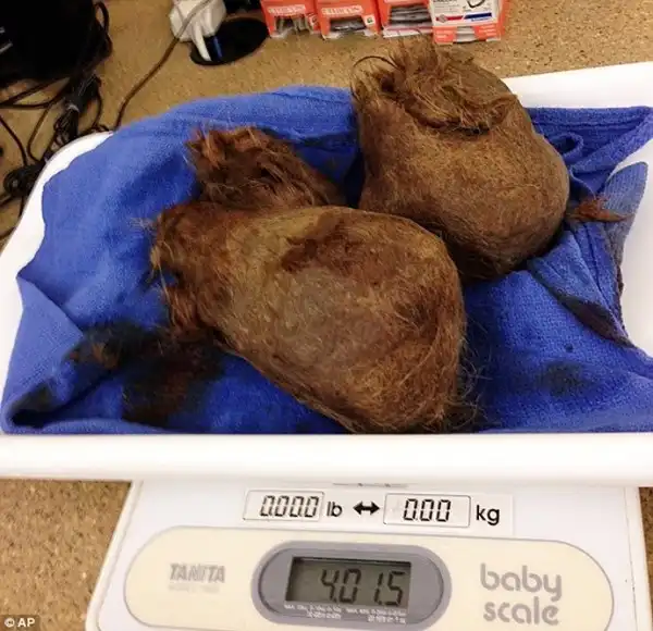 Нередко у кошек в желудке образуются комки шерсти, но большинство представителей семейства кошачьих успешно справляются с этой проблемой самостоятельно. Однако 182-килограммовому тигру из Флориды потребовалась помощь ветеринаров. Как показало вскрытие, в желудке у тигра образовался комок шерсти размером с баскетбольный мяч, от которого самостоятельно животное избавиться не смогло.