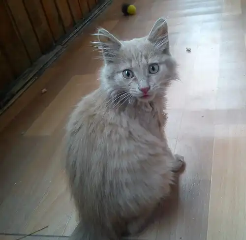 Малышу чуть больше 2-х месяцев, осмотрен ветеринаром, проглистогонен. Мальчишку подобрали в подъезде, но дома он сразу же нашел лоток (и никогда не промахивается) и, конечно, кормушку. Котенок очень пушистый, необычного цвета кофе с молоком. Он храбр, отважен и очень-очень игрив. А при любом внимании со стороны человека мурчит и ластится.