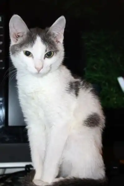 Серо-белый мальчишка, собственник, только его должны держать на ручках, гладить и играть, очень ласковый, просто лизунчик, хорошо привык к горшку, понимает «нельзя». Тел. 8 905 089 1707..