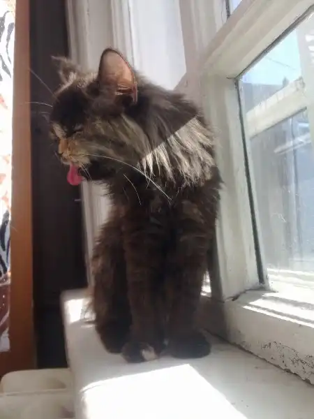 Пожалуйста, помогите! Очень нужна передержка или хозяин!!! Подкинули котенка, пушистый, но худющий, один скелет. Не могу оставить у себя! Ему негде ночевать!!! Сидит около дома, на улице...
