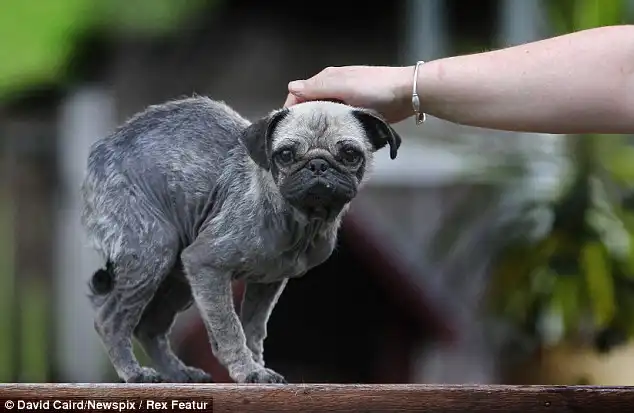 Этого бедного мопса спасли от плохих хозяев,которые на протяжении 18 месяцев окуривали его марихуаной.Теперь он в приюте и его лечат,а после лечения его отдадут в хорошие руки.