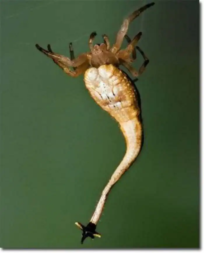 Эти маскирующиеся под скорпионов пауки живут в Австралии, Мадагаскаре и Юго-восточной Азии. Несмотря на свой довольно грозный вид, они совершенно неопасны. Их хвост на самом деле мягкий и абсолютно безобидный.