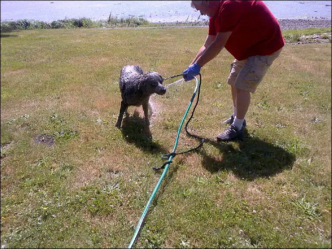Ехал мужичок на своей машине вместе со своей собакой (будем звать его Шариком ). Нормально так ехали, даже отлично... пока что-то не привлекло собаку за окном, и Шарик как дурной начал лаять и прыгать по всей машине, видимо такими жестами он давал понять водителю о немедленной остановке. Очередной прыжок Шарика привел к потере управления автомобилем и последующим съездом с дороги. Всё бы ничего, но машина была загружена нехилым количеством краски (только что купленной в магазине). Прибывшие спасатели чуть не подохли от смеха, когда увидели водителя и падонга Шарега.