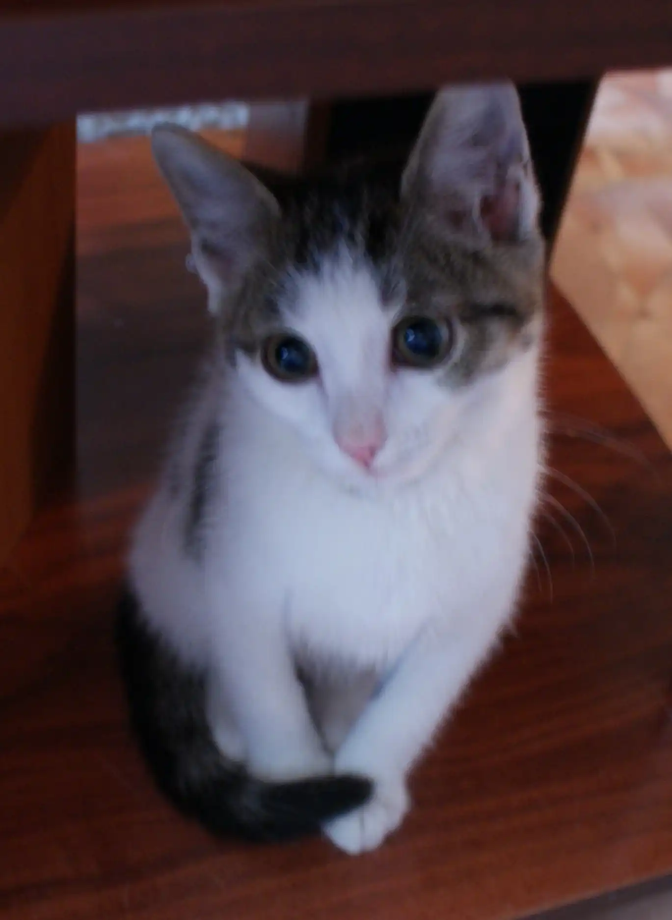 Отдам ласкового, игривого, умненького и хорошо воспитанного котенка в добрые и ответственные руки! Кратко о котенке: пол - женский, возраст - 3 месяца, чистенькая, приучена к лотку, любит общество людей, игривая и жизнерадостная. Порода - метис, мать - ангорская кошка, отец камышовый, поэтому сама кошечка получилась беленькой с камышовыми пятнами, очень интересная и симпатичная. Имя еще не давали, но котенок понятливый, реагирует, когда с ним говорят.