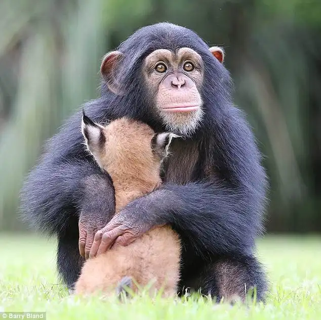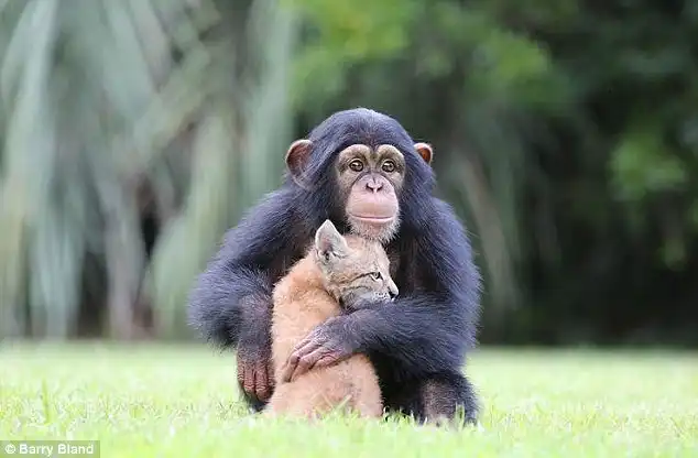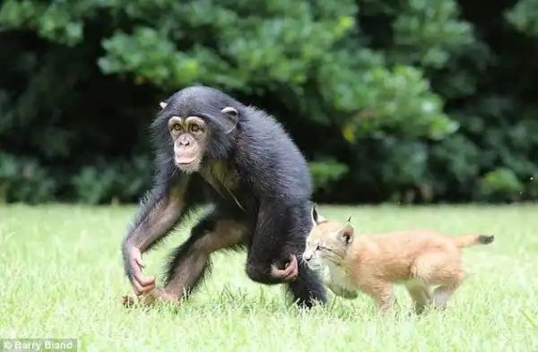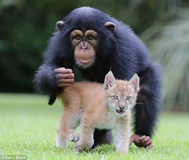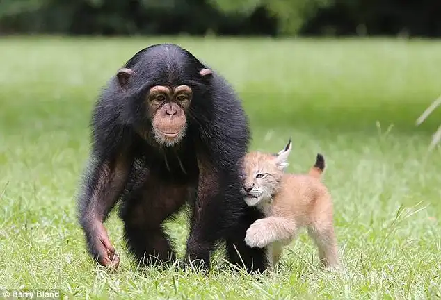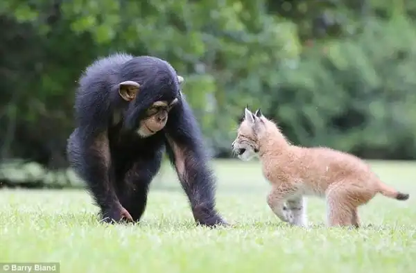 20-месячное шимпанзе и шестинедельная рысь стали лучшими друзьями. "Счастливая пара" проживает в зоопарке Южной Каролины, США.