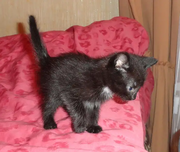 На вид малышке не больше месяца, а её уже выкинули на улицу, испытывать свою судьбу, она не растерялась, залезла на дерево и громко пищала. Девчура гладкошерстная, черная с белым галстучком и пока еще голубыми глазами, как любой малыш, впервые оставшийся без мамы, боится всего нового, стремиться спрятаться и пригреться, нуждается в заботе и бережном отношении. Питается кормом для котят, активно приучается к лотку. Котенок ищет своих заботливых и надежных родителей-хозяев! Доставка , испытательный срок.
