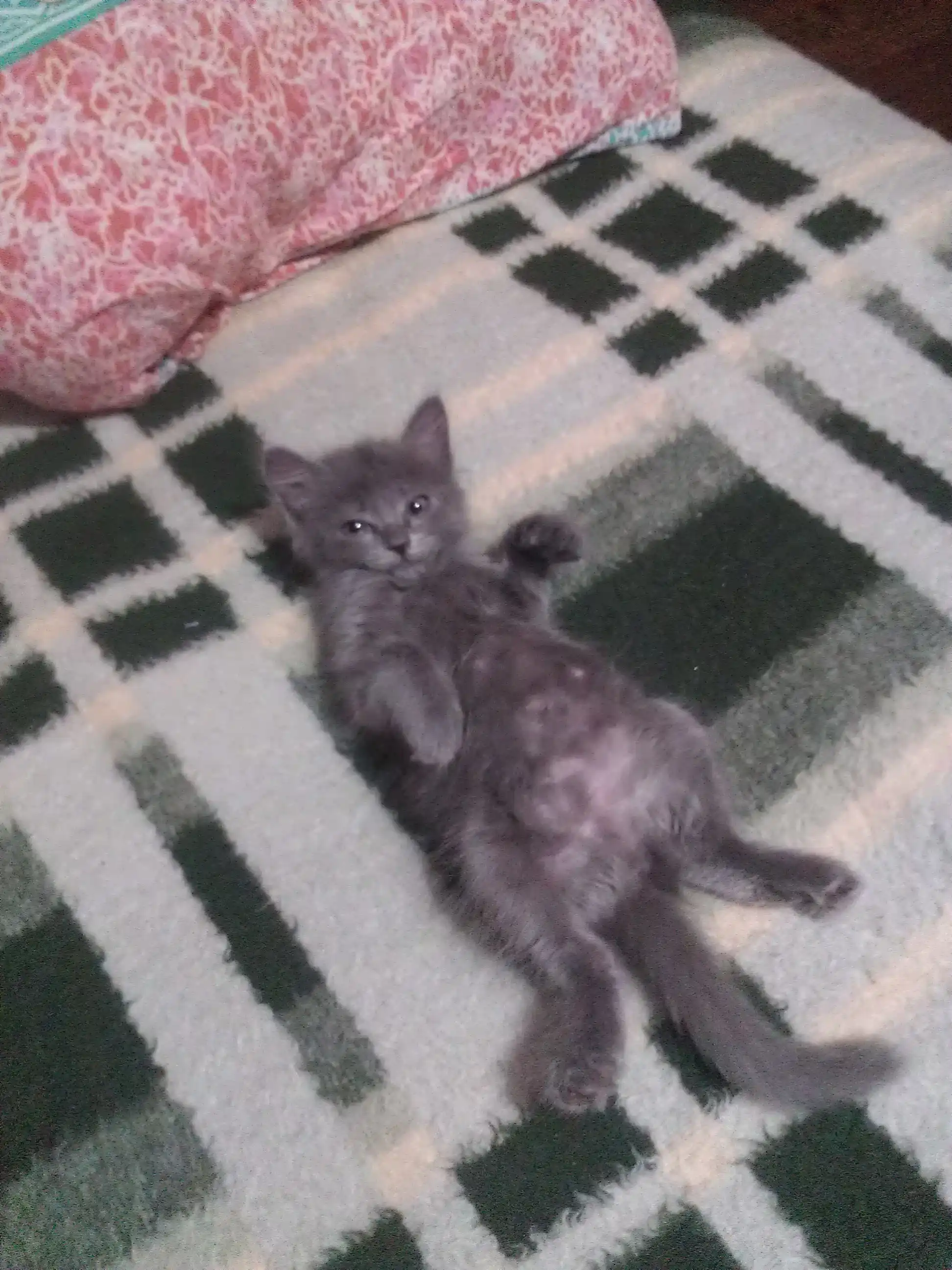Отдам котенка примерно 1,5-2 месяца, ходит в лоток, кот бодрый и веселый =)