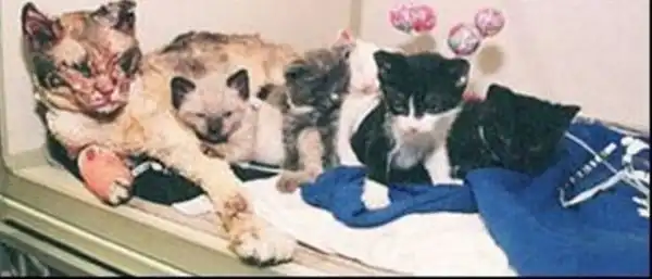 30 марта 1996 года в заброшенном бруклинском гараже в Нью-Йорке начался пожар. Пожарные прибыли на место достаточно быстро, но во время тушения один из пожарных – Дэвид Джианелли – заметил бездомную кошку, которая раз за разом возвращалась в охваченный пламенем гараж, вытаскивая по одному своих новорожденных котят. Несмотря на ожоги глаз, сильно обгоревшие уши и мордочку, она вынесла из горящего помещения всех своих котят – причем, поскольку кошка могла выносить их только по одному, ей пришлось возвращаться в пылающий, пропитанный густым дымом гараж, пять раз. У кошки уже были сожжены лапы, повреждены уши, опалена морда и от огня пузырились глаза, однако только после того, как она вытащила из огня последнего, пятого своего котенка, ткнулась мордой в каждого, чтобы убедиться, что все спасены, потеряла сознание. Один, самый слабый из пяти выживших котят, скончался через месяц после пожара.