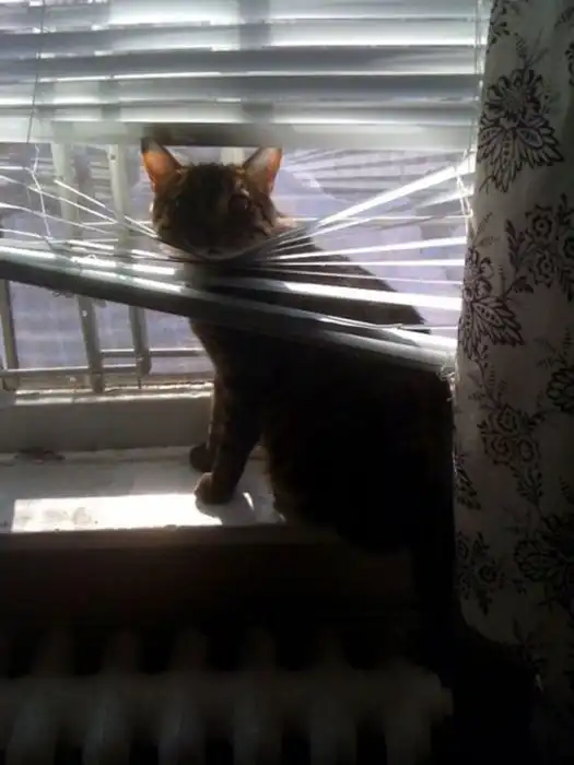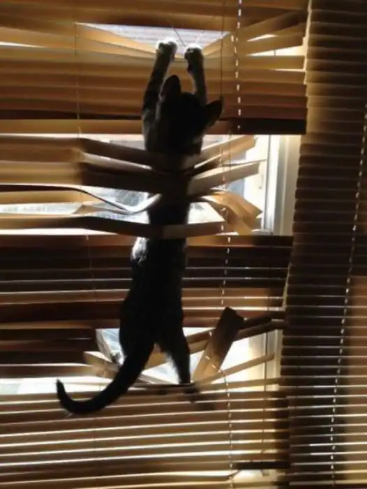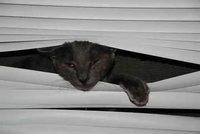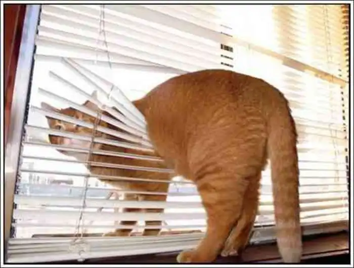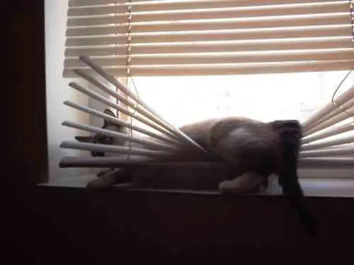 Смешная и весьма забавная подборка фотографий котов, для которых оконные жалюзи являются злейшим врагом ))