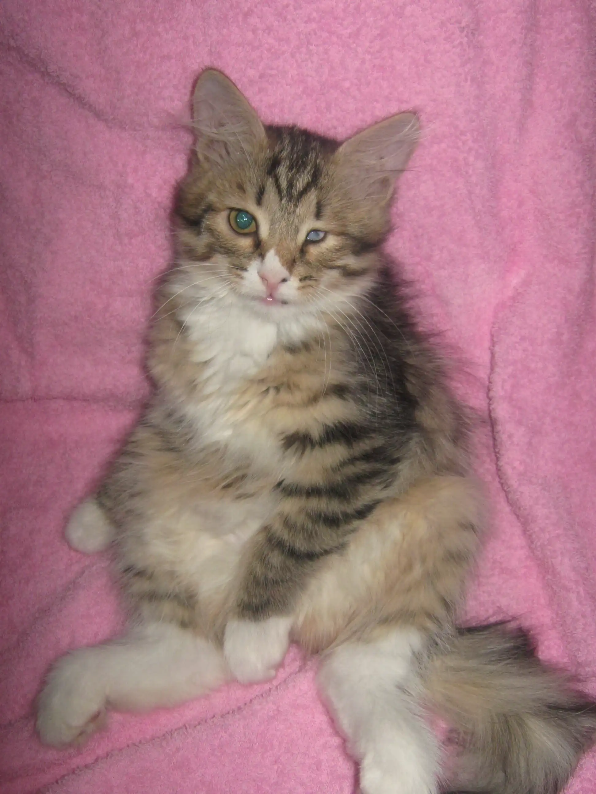 Черепаховая ангорская девочка, спокойная и ласковая, имеет дефект(недоразвитый глазик). Ест всё, к лотку приучена.