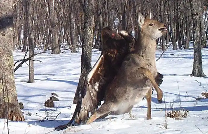 Хищный золотой орёл против оленя