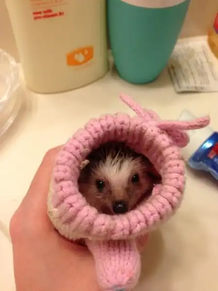 Ежики с радостью дают чистить себя зубной щеткой. Им это даже нравится.