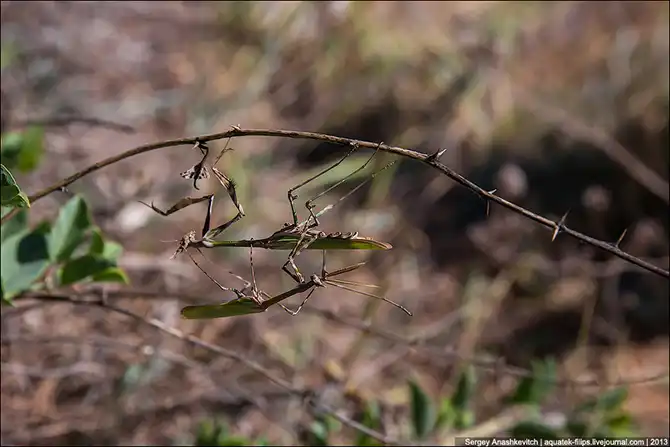 Поэтому танец и сексуальная прелюдия богомолов эмпуза на ветке каперсов выглядит романтичной историей