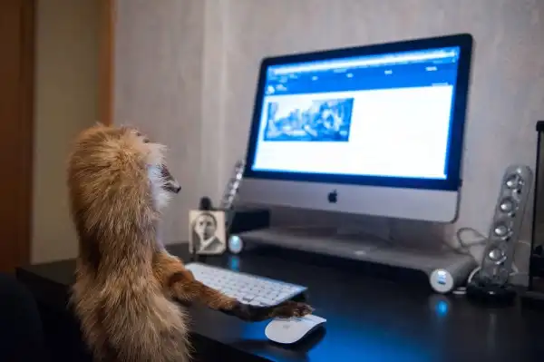 После завтрака Лис идет в кабинет, чтобы немного поработать. Он ведет журнал в сети и сегодня ему надо написать что-нибудь веселое для защитников животных и экологов.