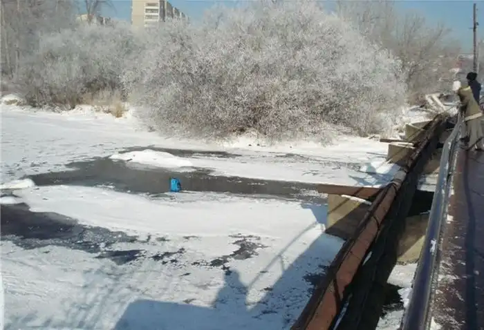 Две девушки переходили через мост в Екатеринбурге и увидели на льду синюю сумку.