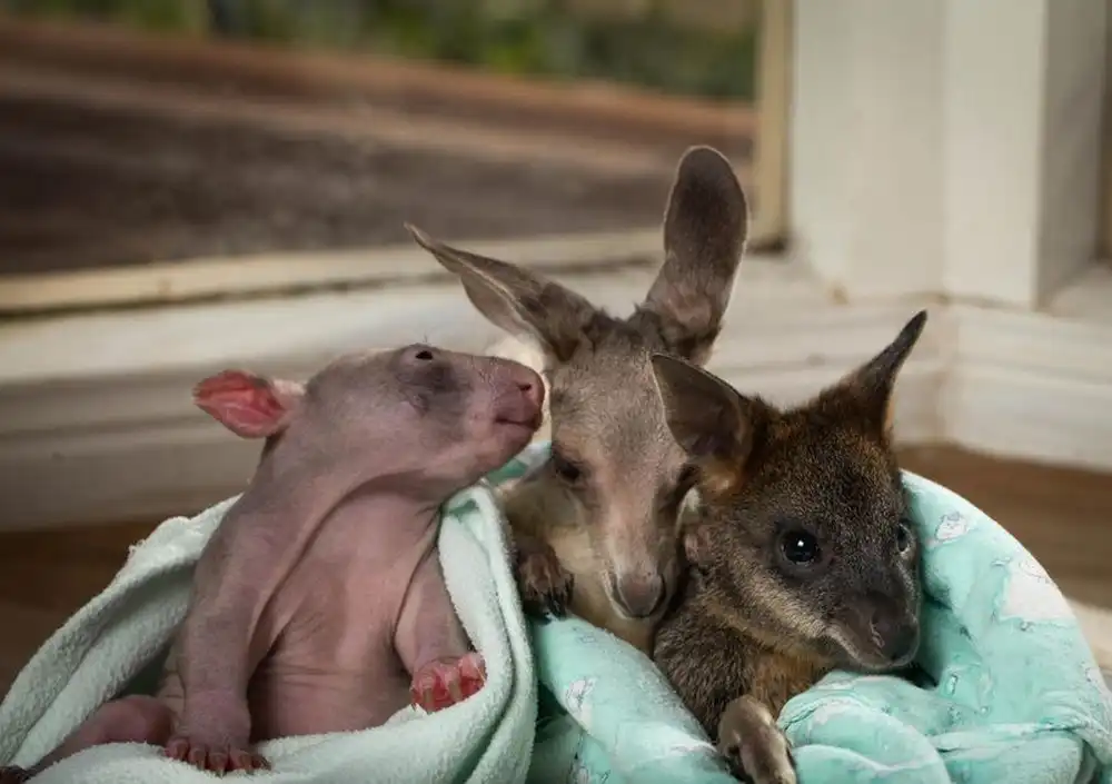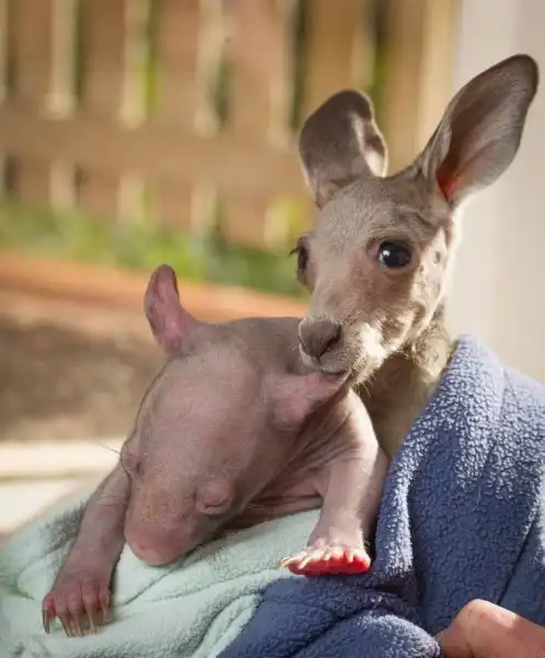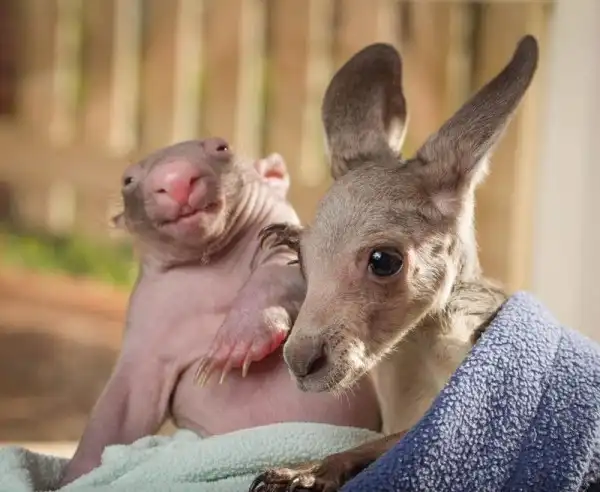 Сиротки вомбат и кенгуру стали лучшими друзьями