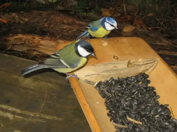 В качестве корма для птиц подходят разнообразные «лакомства»: нежареные семечки тыквы, подсолнечника или арахиса, отварной рис, гречка, перловка, картофель и даже несоленое сало и мясо. Как ни странно, шустрые синички очень любят зимой именно сало.