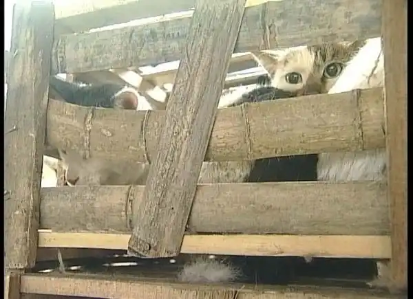 Эти ящики с тысячами живых кошек ждут своего поезда в Гуанчжоу (Китай).