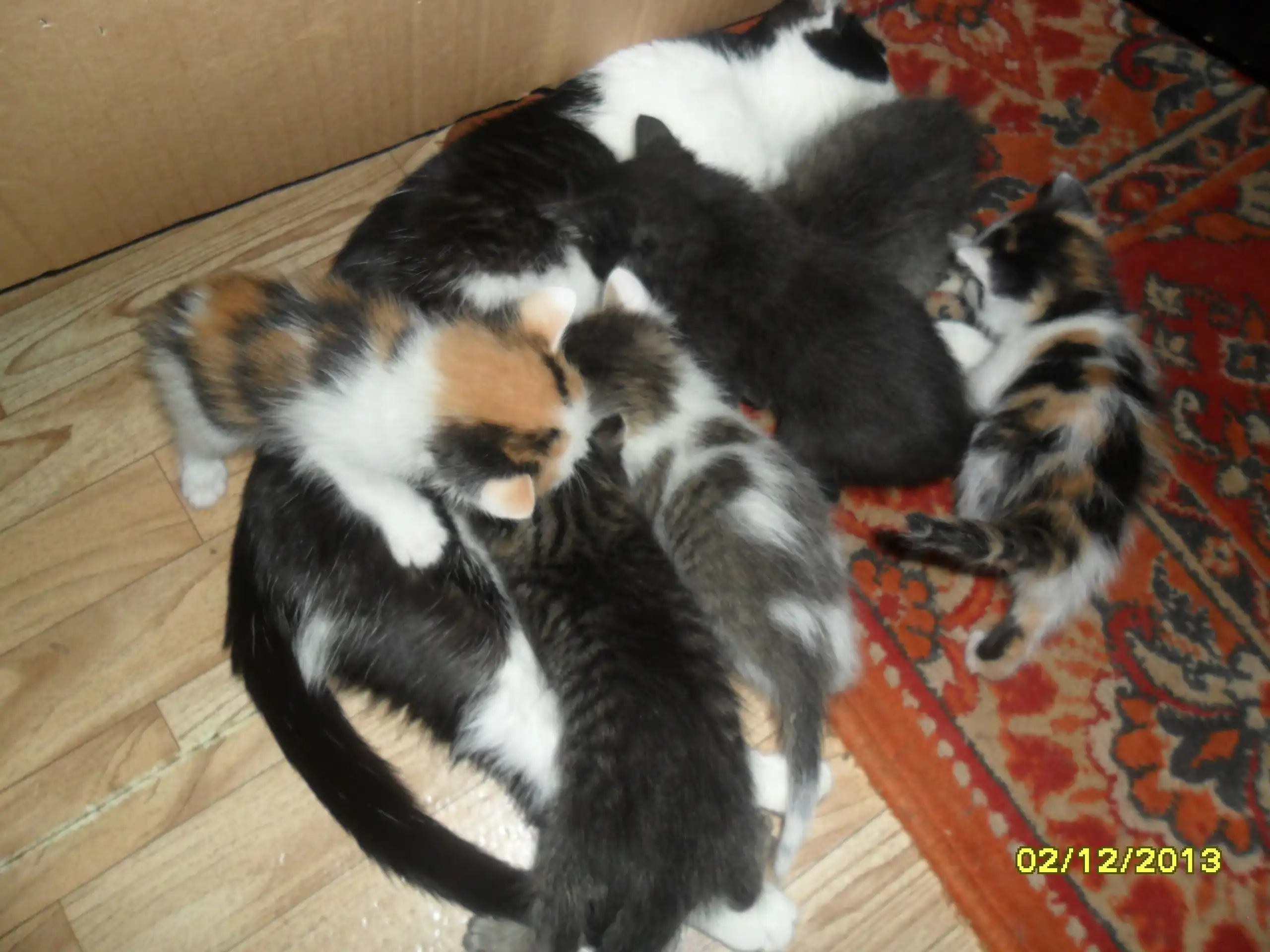 Подобрали кошку. Оказалась беременной. Месяц назад родила 6 котят.