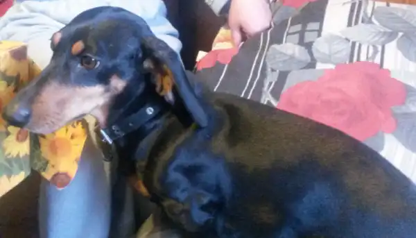 Веселая девочка-такса ищет дом.Потеряшка нашлась чуть больше двух недель назад. Хозяин так и не объявился,теперь мы ищем нового доброго и хорошего хозяина. Такса девушка сообразительная,приученная к прогулкам; активная и любознательная. Возраст примерно 2 года, так как жизненный опыт соответствует, знает команды и слушается. Собака ласковая, не агрессивная, но есть одно но - не любит котов,так как в душе охотница, следовательно котов гоняет,как добычу, не то,чтобы готова их съесть, но побегать за ними любит. В еде не привередлива. Помогите найди нам хозяина, так как наш кот уже устал от "гонок по вертикали", к тому же у нас есть своя собака, с тремя животными уже сложновато. Звоните нам по телефону 8-903-951-47-79. Виктория Александровна.
