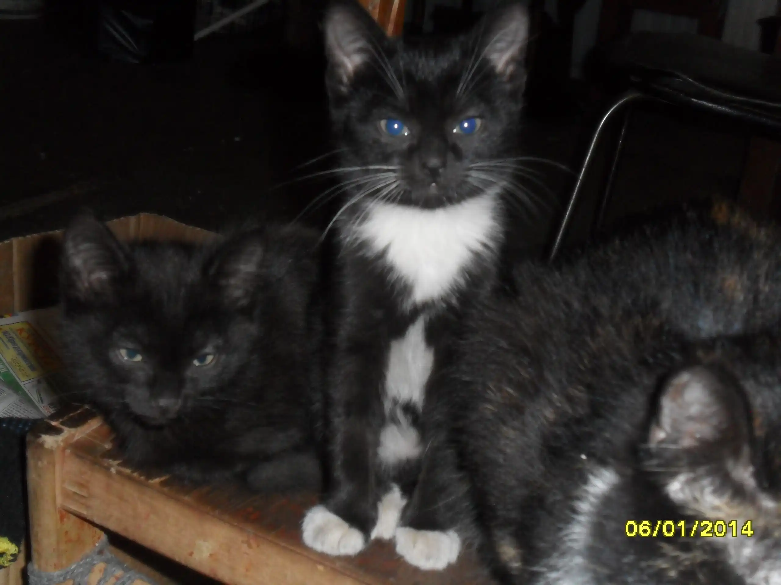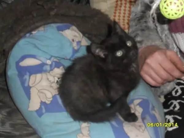 Котятам 2 месяца. Мальчик весь черный, девочка в белых носочках. Кушают все, ходят в лоточек исправно, подойдут и для частного дома, так как когда их закрывают одних - приучены ходить в туалет и в дырку под пол.