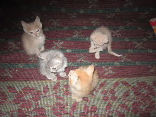 Все котята разноцветные, приучены к лотку, неприхотливы в еде, любимая еда: супчик!!! :) Котятам около двух месяцев