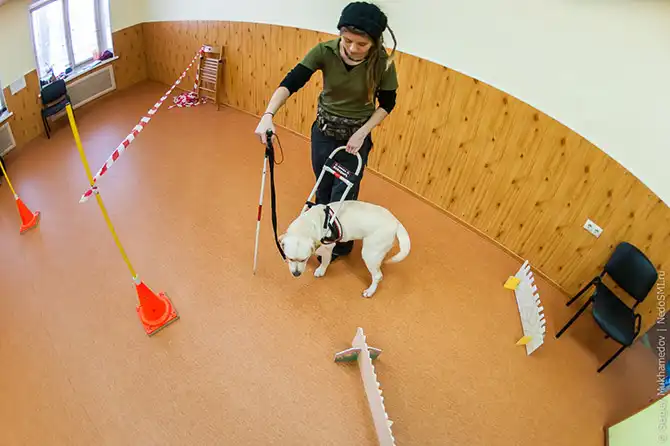 Подготовка собак – не единственное занятие учебно-кинологического центра «Собаки-помощники инвалидов». Не менее важна их работа с незрячими инвалидами. Здесь слепых учат осваивать новые маршруты, преодолевать страх выхода на улицу, пользоваться белой тростью и не бояться общения со зрячими людьми – такие проблемы встречаются почти у всех. Специальный тренер по пространственному ориентированию учит исследовать мир, обходить препятствия, разрешать конфликты с другими людьми. После такого курса с тренером незрячие приобретают новые способности, учатся бороться со страхами. Был даже случай, когда девушка-инвалид, пройдя такой тренинг, решила отказаться от очереди на собаку и попробовать самостоятельно передвигаться по городу.