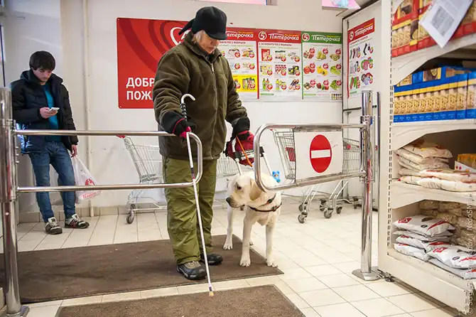Собак-поводырей обязаны пускать во все общественные места, включая магазины, рестораны, театры, гостиницы и государственные учреждения.