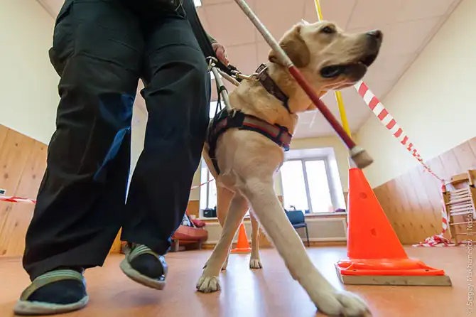 Они не уклоняются от направления и могут принять решение, если дорога вдруг оказалась перекопанной. Если поводырь видит, что можно обойти – начнет обходить. Если нет – «скажет» об этом хозяину и уже он будет решать в какую сторону идти или же просить помощи у окружающих.