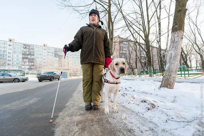 Собаки-поводыри всегда останавливаются в «контрольных точках» – основных местах маршрута, чтобы незрячий не потерял контроль в пространстве. Это очень важно. Они ведут хозяина по левой стороне дороги, чтобы основной поток шел навстречу – сзади прохожие могут не понять, что перед ними незрячий.