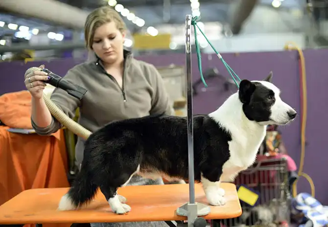 Еще один вельш-корги. Терпеливо ждет, когда его разгладят пылесосом. Выставка собак Westminster Kennel Club 2014, Нью-Йорк, 10 февраля.