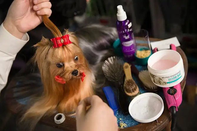 Последние приготовления. Йоркширский терьер. Это декоративная порода собак, выведенная в Англии, графстве Йоркшир в конце XIX века.