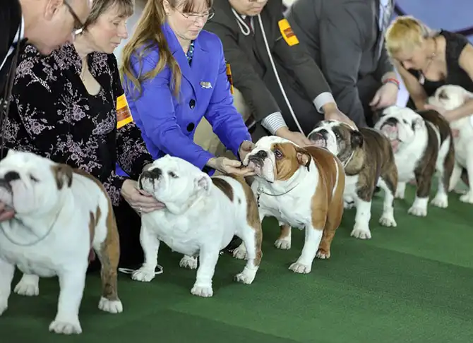 Бульдожья очередь. По типу использования стандарт относит породу к собакам-телохранителям и компаньонам. Современные английские бульдоги выведены во второй половине XIX века. Содержание бульдогов требует большой ответственности, так как порода в процессе развития, превратившись из бойцовой в декоративную, потеряла свои рабочие качества и стала весьма уязвимой. Этот факт часто отмечается критиками пород.