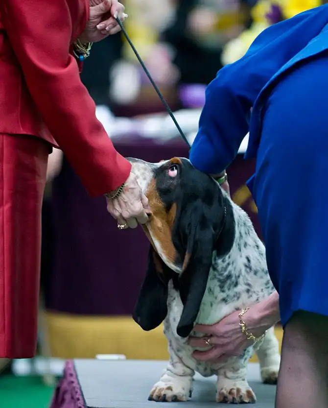 Ну что вам всем от меня надо? Бассет-хаунд или собака лейтенанта Коломбо во время судейства. Название породы происходит от 2 слов: «bass» — низкий и «hound» — гончая. Страна происхождения — Великобритания.