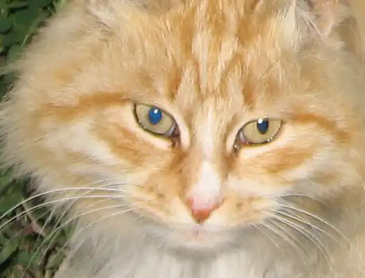 В коей сочетались черты как персидской породы, так и ещё одной - турецкой. Якобы, кошки, очень похожие на тех, за окраску которых их все издавна на Руси звали "Чубайсами", изначально произошли из региона, где сейчас располагается Турция. Там сверху на фотке в центре - рыжий кот. Вот что-то типа этого...