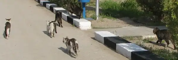 Одичавшие кошки в полузаброшенном городке в пустыне.