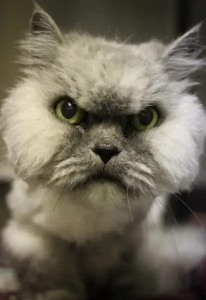 Этого бродячего кота с примесью перса нашли работники приюта для животных в Северной Каролине. Желающих стать новыми хозяевами зверюги с суровой мордой не было. Но все-таки нашлась одна смелая девушка по имени Шэйн Пун из Онслоу Каунти, котораяосмелилась приютить бедолагу. Глядя на его морду, складывается ощущение, что девушке немного осталось.